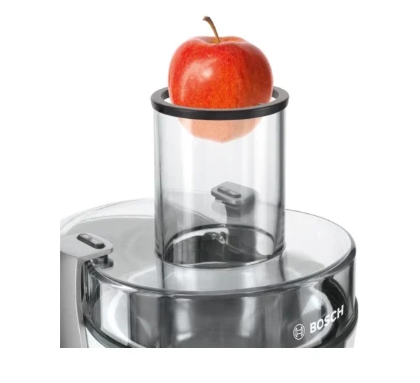 آبمیوهگیری بوش مدل «MES25A0» یکی از آبمیوهگیریهای تککاره موجود در بازار است. این دستگاه از بدنهای از جنس پلاستیک بادوام ساخته شده و استحکام خوبی دربرابر ضربه دارد. قسمت ورودی میوهها در بخش بالایی دستگاه واقع شده است که با قطر زیادی که دارد، میتواند بهآسانی قطعات بزرگ میوه را از خود عبور دهد. این ویژگی کار با دستگاه را آسانتر کرده و به آن سرعت بخشیده است. مخزن آبمیوهگیری در این محصول بوش مندرج بوده و 1.25 لیتر ظرفیت دارد.