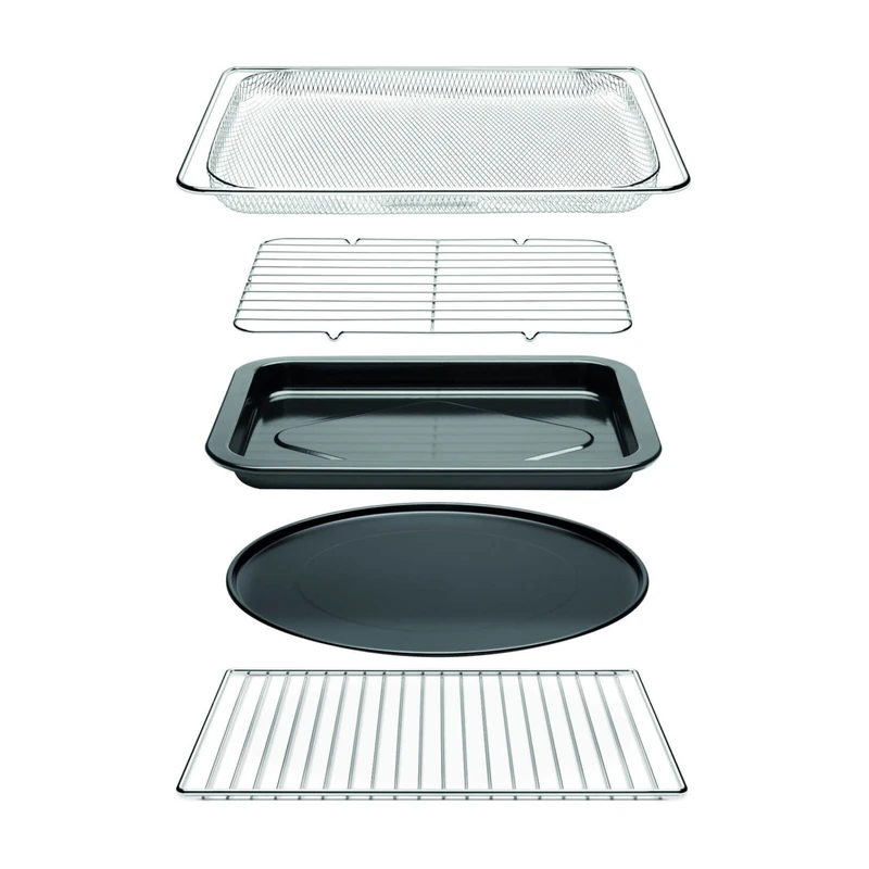 دستگاه همراه با سینی پخت، سینی گریل، سبد سرخ‌کن هوا، سینی پیتزا و سینی جمع‌آوری خرده نان ارائه می‌شود تا تمام نیازهای پخت شما پوشش داده شود.