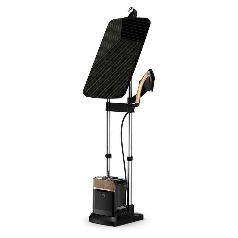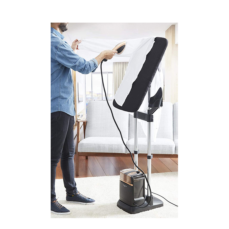 این محصول با طراحی ایستاده و مدرن، مناسب خانهها و حتی محیطهای کاری (بوتیکها و مزونها) است. پایهی ایستاده محکم، میلهی تلسکوپی قابل تنظیم و صفحهی پرس با سایز مناسب، استفاده از آن را راحت و کاربردی کرده است. علاوه بر این، چرخهای روان زیر بدنه، جابهجایی دستگاه را آسان میکند.