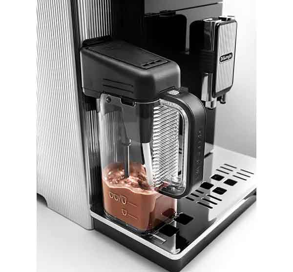 این اسپرسوساز دارای 2 نازل قهوه بوده که امکان آماده کردن همزمان 2 فنجان نوشیدنی را به شما می‌دهد. همچنین مخزن شیر این دستگاه در سمت چپ آن قرار داشته که با کمک آن می‌توانید نوشیدنی‌های با شیر متنوعی سرو کنید.