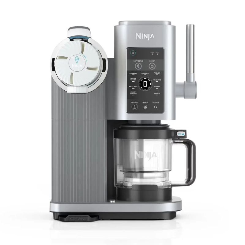 Ninja Swirl by CREAMi NC701 یکی از دستگاه‌های پیشرفته خانواده Ninja است که امکان تهیه انواع بستنی، سافت‌سرو (soft serve)، ماست یخی، اسموتی یخ‌زده و نوشیدنی‌های یخی دیگر را تنها با یک لمس فراهم می‌کند. این مدل با عنوان Swirl شناخته می‌شود، چون علاوه بر قابلیت تهیه بستنی کلاسیک، امکان پخش چرخان (swirl / dispense) دارد؛ یعنی می‌توانید بستنی را به شکل قیفی یا با حرکت مارپیچ (swirl) از دستگاه بیرون بدهید.مدل NC701 یکی از دستگاه‌های رده‌بالای سری NC700 است و امکانات متنوعی برای خلق دسرهای یخی خانگی ارائه می‌دهد.
