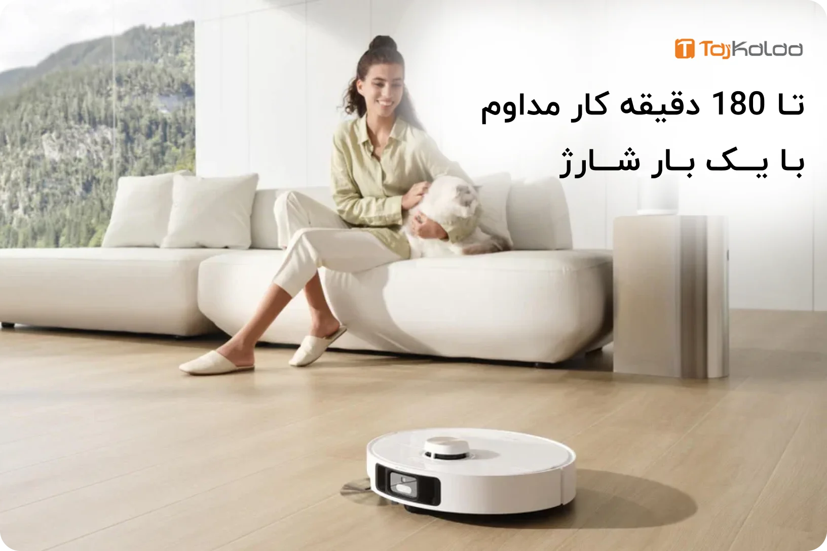 این دستگاه با ظرفیت باتری ۵۲۰۰ میلیآمپر و مدت زمان کارکرد ۱۹۴ دقیقه، قادر است بهطور مداوم نظافت را انجام دهد بدون نیاز به شارژ مجدد. طی کشی کنجها و سنسور تشخیص فرش به دستگاه این امکان را میدهند که نظافت دقیقتری در گوشهها و نقاط دشوار دسترسی انجام دهد.