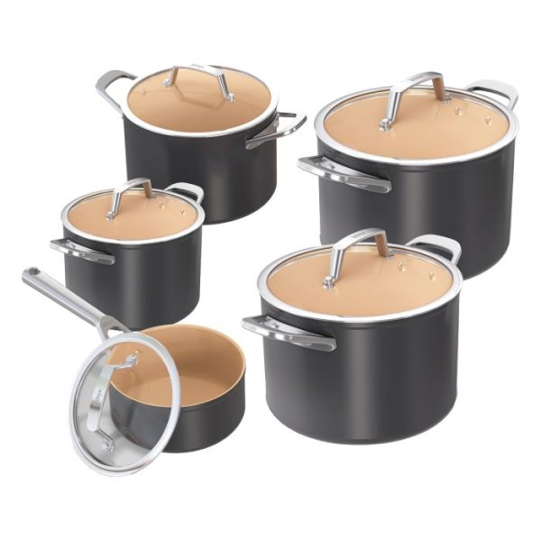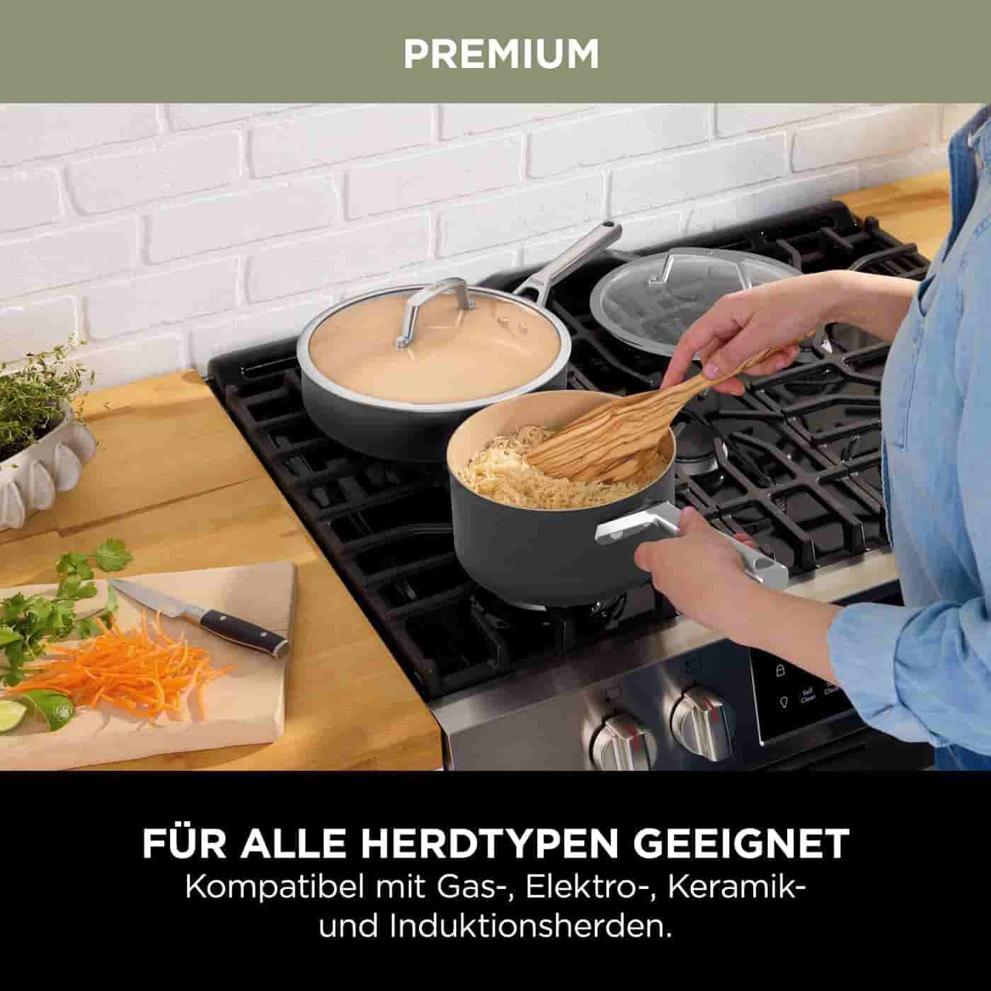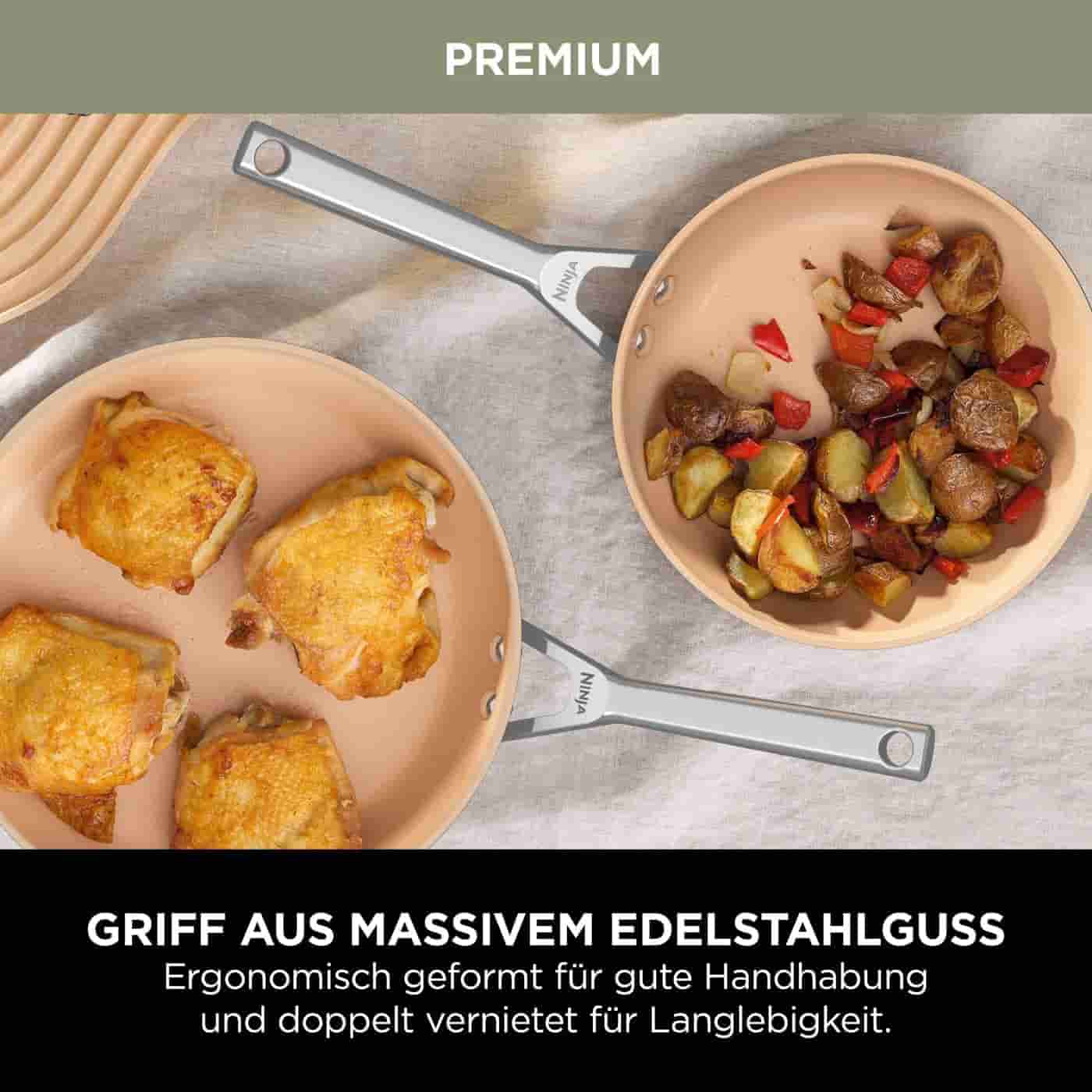 جنس بدنه این قابلمهها از آلومینیوم فشرده است که باعث توزیع یکنواخت گرما و پخت سریعتر غذا میشود. اما چیزی که ست قابلمه نینجا را از دیگر برندها متمایز میکند، روکش سرامیکی نچسب آن است. این روکش فاقد مواد مضر مانند PFOA، PTFE و سرب بوده و برای سلامت خانواده کاملاً ایمن است.