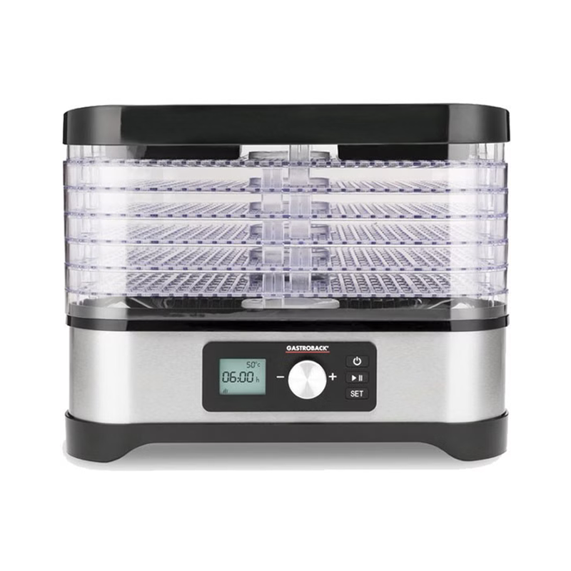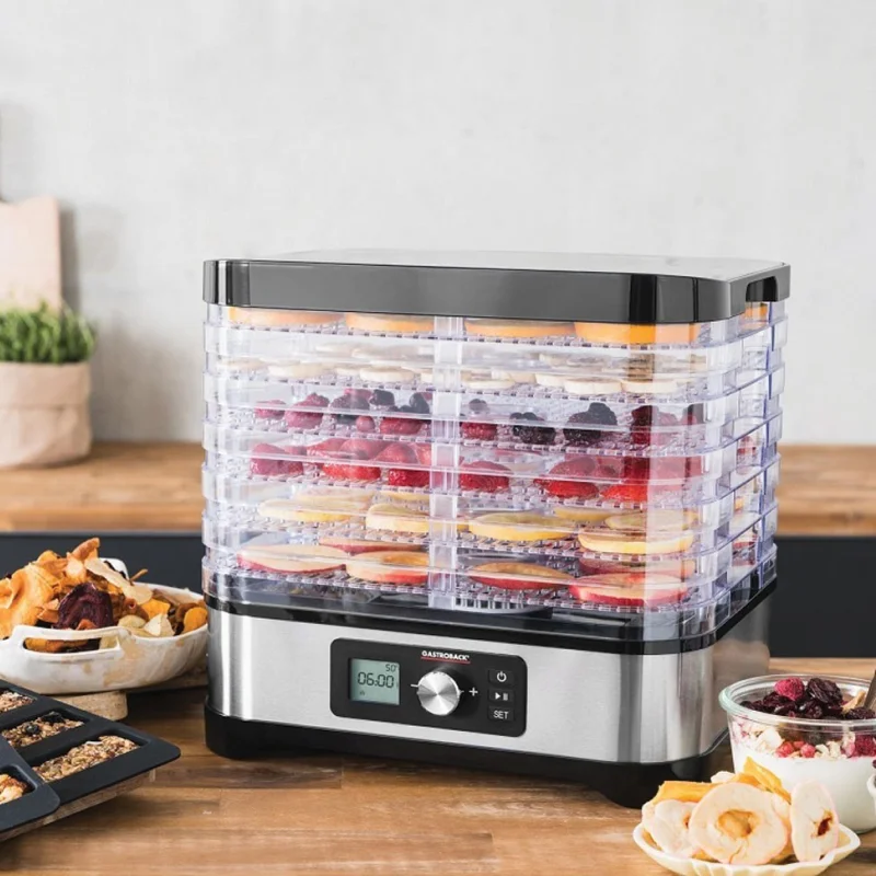 میوه خشککن گاستروبک مدل 46600 یکی از محصولات حرفهای و پرطرفدار برند معتبر Gastroback آلمان است که برای تهیه انواع میوه خشک، سبزی خشک، لواشک، خشکبار، گوشت خشک و حتی خوراکیهای سالم خانگی طراحی شده است. این دستگاه با طراحی مدرن، عملکرد قدرتمند و قابلیتهای ویژه، انتخابی ایدهآل برای افرادی است که به دنبال یک روش سالم و طبیعی برای نگهداری مواد غذایی هستند.