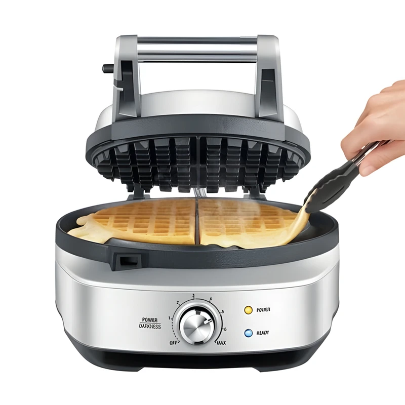 تنها کافی است خمیر وافل خود را داخل دستگاه بریزید، درب را ببندید و منتظر بمانید تا چراغ «Ready» روشن شود — در کمتر از چند دقیقه، وافل‌های داغ و خوش‌عطر آماده‌اند!