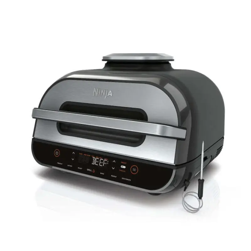 کبابپز Ninja Foodi Smart XL که چیپسها را سرخ میکند، میپزد و با تکنولوژی هواپز طبخ میکند. نسل دوم با طراحی شیک جدید با سیستم آشپزی هوشمند و ظرفیت XL، به وعدههای غذایی پرجمعیت خانواده با فشار دادن یک دکمه به پخت کامل، از rare تا well done، دست پیدا کنید. گریل NINJA FOODI SMART با عملکرد ۶ در ۱ شامل : ۶ عملکرد پخت و پز همه کاره ازجمله Grill, Air Crisp, Roast, Bake, Broil, and Dehydrate با طیف وسیع دما فعال شده است.از دیگر ویژگی های جذاب این دستگاه که آنرا تبدیل به یک انتخاب مناسب برای کسانی که وقت زیادی ندارند کرده ویژگی تمیز کردن آسان آن است صفحه گریل با روکش سرامیکی، قابل جدا شدن، سبد و قابلمه پخت و پز همگی قابل شستشو در ماشین ظرفشویی هستند و به راحتی تمیز می شوند. کباب پز با ظرفیت بالا که دقیقاً با نتایج عالی پخت می شود بیش از یک گریل –با ۶ عملکرد پخت: سرخ کردن با هوا، پختن، برشته کردن، گرم کردن مجدد، آبگیری و گریل کردن سیستم آشپزی هوشمند – کاوشگر پخت دیجیتالی به شما امکان میدهد بدانید چه زمانی غذای شما کاملاً پخته شده است، دقیقاً همانطور که دوست دارید، غذای سرخ شده تا ۷۵ درصد چربی کمتر نسبت به روش های سرخ کردنی سنتی می باشد ، شامل قابلمه ۳.۸ لیتری، سبد کری سپر ۳.۸ لیتری، بشقاب گریل ۷۴۰ سانتی متری مربعی، برس تمیزکننده، راهنمای دستور پخت آشپز است. قطعات قابل شستشو در ماشین ظرفشویی سیستم آشپز هوشمند کاوشگر پخت دیجیتال دقیقاً دمای غذای شما را در حین پخت نظارت می کند، بنابراین نیازی به این کار ندارید! از موارد کمیاب تا خوب انجام شده، پایان خود را انتخاب کنید و گوشت و ماهی مورد علاقه خود را با کاوشگر در جای خود بپزید. هشدارهای صوتی به شما اطلاع میدهند که چه زمانی آماده برداشتن و استراحت قبل از ارائه است. بیشتر از یک گریل با ۶ کارکرد پخت و پز – سرخ کردنی در هوا، پختن، برشته کردن، آبگیری، گرم کردن و گریل کردن، غذاها و میان وعده های خوشمزه را برای کل خانواده ایجاد کنید. بدون نیاز به تلنگر با فناوری Cyclonic Air. از یخ زده بپزید. بشقاب گریل بزرگ ۷۴۰ سانتی متر مربعی تا ۶ همبرگر مناسب است. شامل قابلمه ۳.۸ لیتری و سبد کریسپر ۳.۸ لیتری. قابلیت میوه خشکن کن، سرخ کن ، گریل کردن و پخت و پز را دارد ، طول سیم ۹۰ سانتی متر ، بدنه ضدزنگ ، ولتاژ ۱۲۰ ولت ، آمپر ۶۰ آمپر ، توان ۱۷۶۰ وات ، قابل شستشو در ماشین ظرفشویی را دارد .